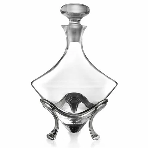This elegant decanter will add a distinguished air to any occasion. This elegantly shaped decanter sits proudly in a pewter frame stand, making it a stunning conversation piece.