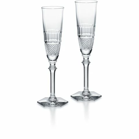Baccarat’s Diamant Champagne Flute Set elevates the art of drinking bubbles to more heights. The Diamond cut produces an amazing play on light. Between sheer radiance and extreme refinement, the Diamant Champagne Flute set, designed by Thomas Bastide is a classic, which calls for the very best vintages.