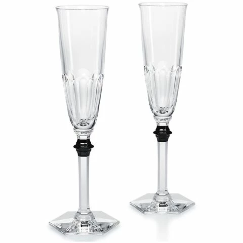 Making light with black. Seductive and bold, the Baccarat “Reflections” pieces engage light and darkness. Placed together, the clear crystal and the black Eve flute redouble their elegance and attract all eyes.
