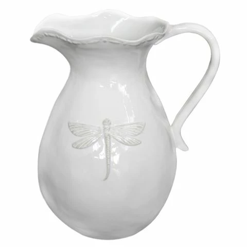 - Dragonfly Pitcher with large curved handle and beautifully fluted rim,