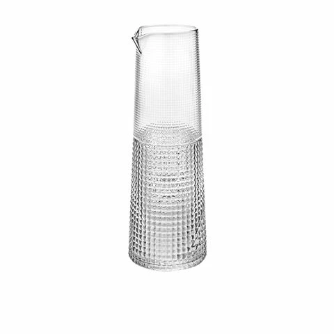 Elevate your tablescape with the Speedy Carafe. Crafted from glass, it features a stunning square patterned design that displays the artisanal craftsmanship of Italian glassmakers.