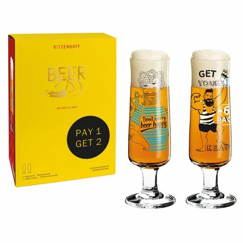 Enjoy your beer with the maximum of style with Ritzenhoff’s cult designed beer glasses. They’re embellished with amusing illustrations by German artists, Natalia Yablunovksa and Dominika Przybylska. Each glass portrays beer drinkers with fun slogans including Don’t Worry, Beer Happy, your glass of beer just turned into a work of art.