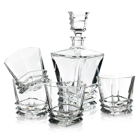 Royal Doulton’s Prism Decanter Set evokes the modern, yet retro style of the Deco era – in thick, heavy crystal that shines and sparkles in the light. The large decanter is accompanied by four tumblers, just the right shape and size for your favourite tipple.