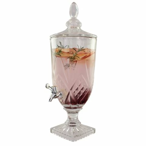 Serve your drinks in style with the Wilkie Brothers Walston Drinks Dispenser. Perfect for entertaining and displaying a variety of refreshing drinks such as cocktails, juice or water. Crafted from high quality thick glass, it features a stylish pedestal and BPA-free spigot that is positioned at cup height for easy pouring. The wide opening makes it easy to clean and refill with punch, cut fruit or ice. Designed with a timeless and intricate crystal cut pattern, it will showcase your beverages and add a sparkle to any table.